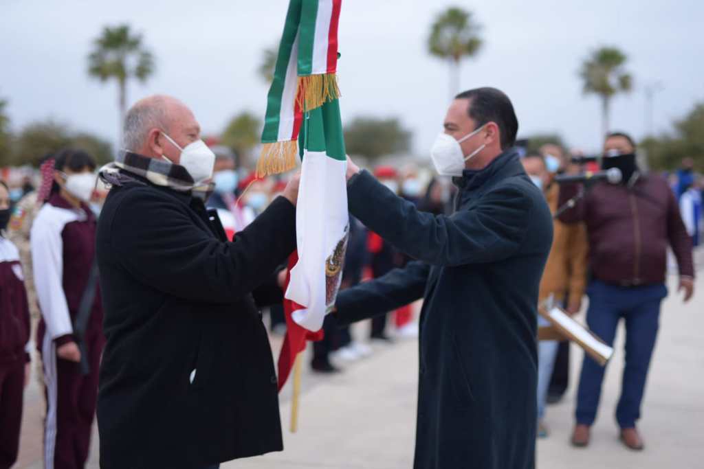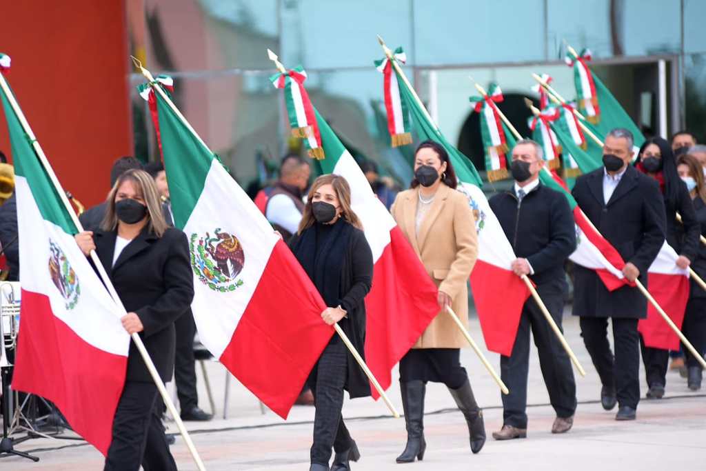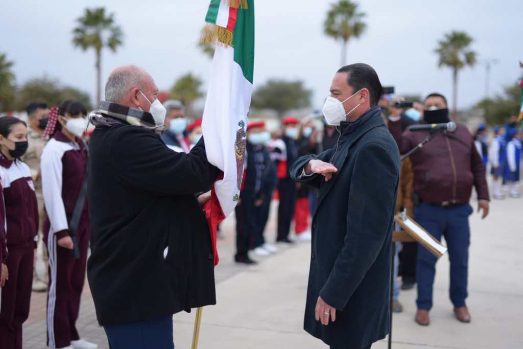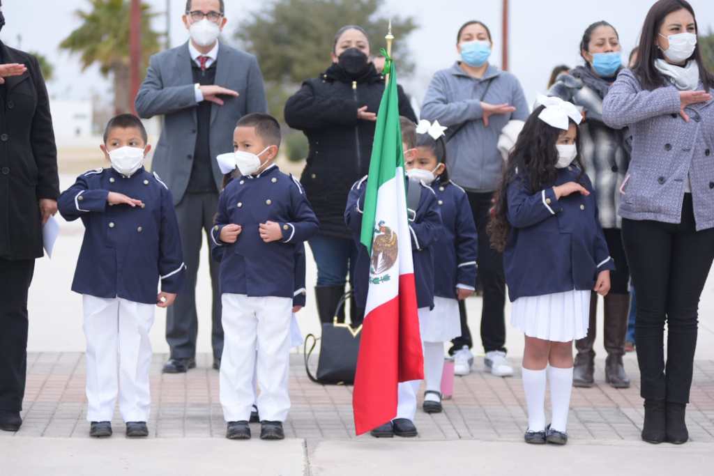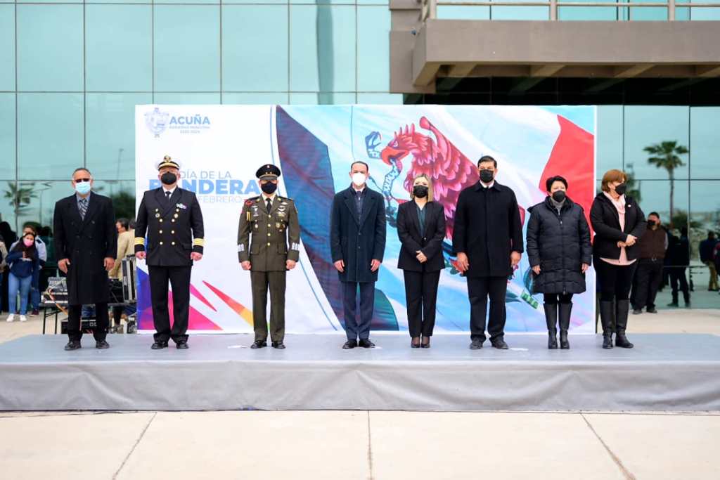 Acuña, Coah., 24 de febrero de 2022.- Con honores a la Enseña Nacional, el
