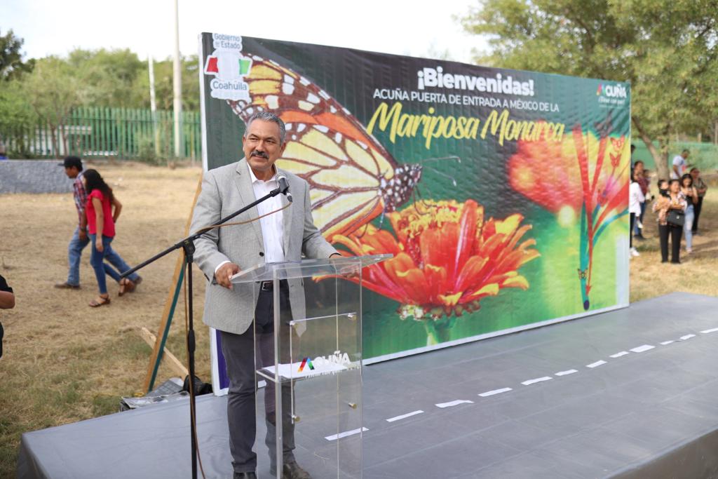 Además, en la develación de monumento a la mariposa monarca elaborado por el
