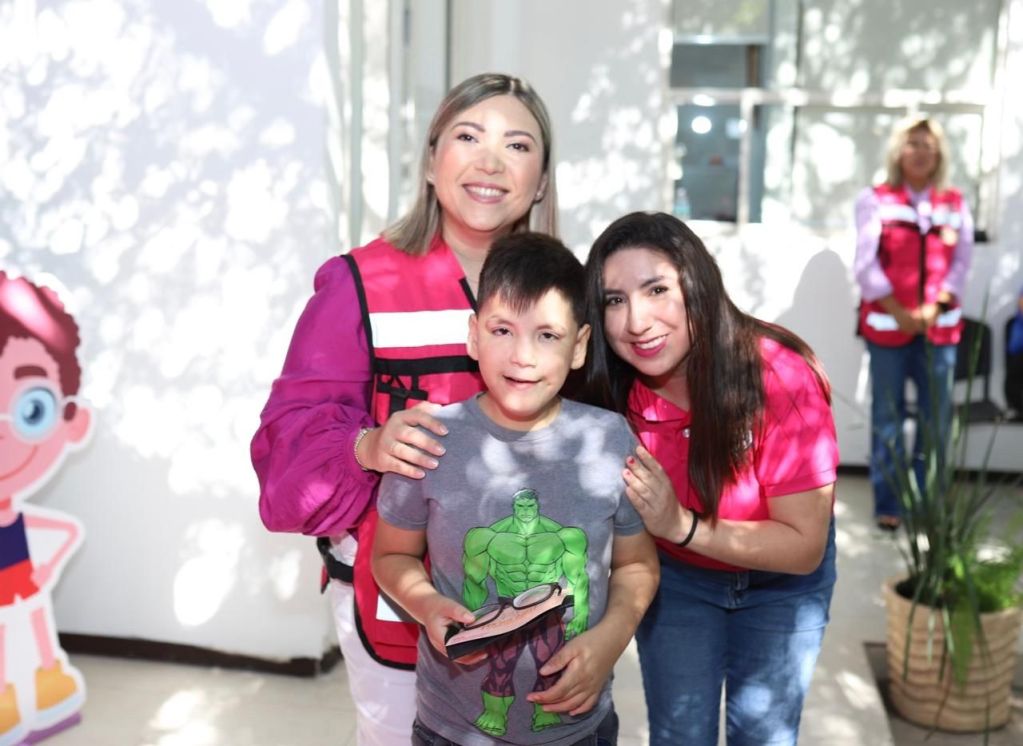 Hoy, la presidenta del Sistema DIF Yahaira Romero; la coordinadora del programa de Salud Visual Adriana Bonilla Meave; de las coordinadoras del Departamento de Atención a Personas con Discapacidad Luz Idalia Rojas y Maricruz Vega Cuéllar, presidió la entrega de lentes.