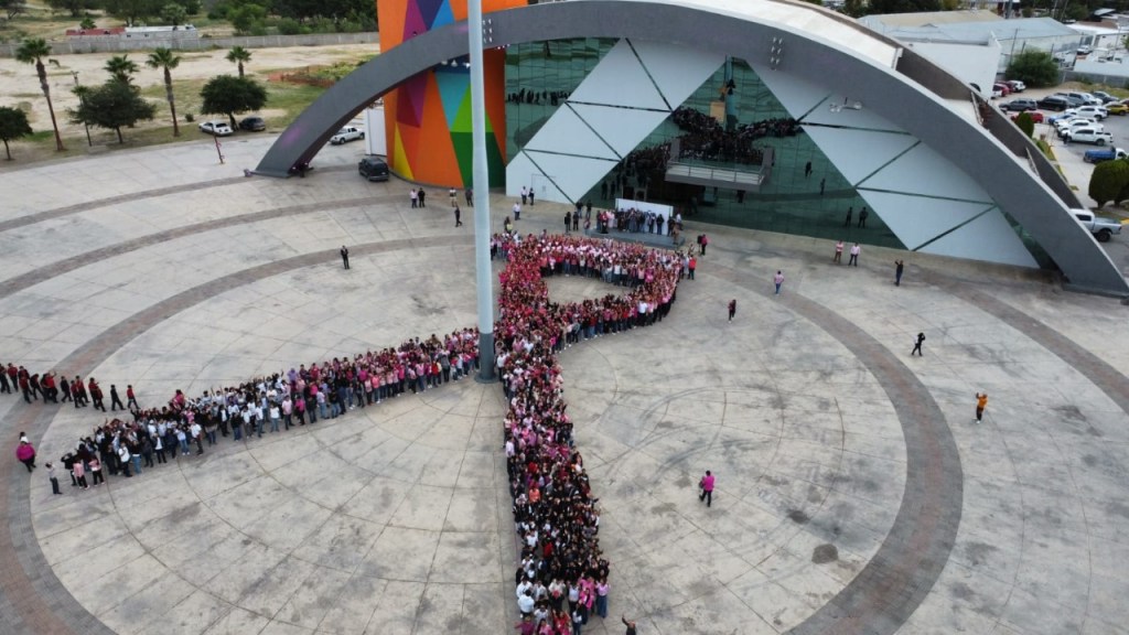 En la víspera del Día mundial de la lucha contra del cáncer de mama – 19 de oct. – se realizó jornada en la macroplaza con la formación de lazo rosa humano, con el llamado a priorizar las medidas preventivas y de atención oportuna.
