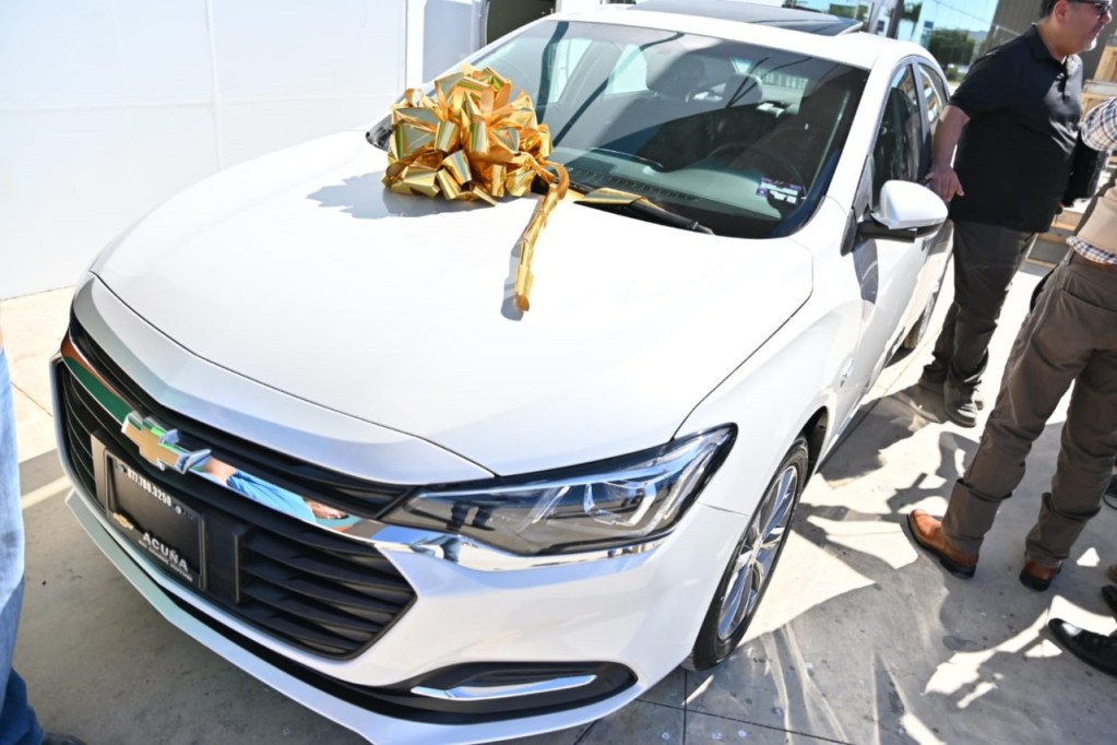 Hoy, en la explanada de la presidencia municipal, el director de Egresos Virgilio de Hoyos Hernández, tras firma de acta de recepción, previa entrega del boleto original, del comprobante de pago e identificación oficial, el feliz afortunado recibió documentos del vehículo y llaves, así como vale para el surtido de gasolina.