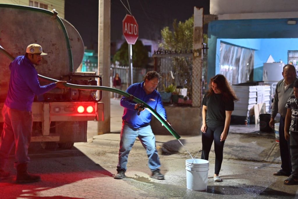 Durante los trabajos de reparación, SIMAS brindó apoyo a los vecinos del sector afectado a través del abastecimiento de agua con pipas, asegurando que las familias contaran con el recurso mientras se restablecía el servicio.