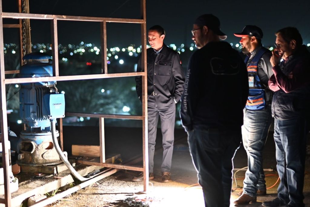 Acuña, Coah. 07 de marzo de 2025.– Producto de los fuertes vientos registrados en la ciudad durante la semana, un sector de Acuña se vio afectado en el abasto de agua debido a una falla en el equipo de bombeo del tanque Aeropuerto, lo que provocó una disminución en la presión del servicio. Ante esta situación, el alcalde Emilio de Hoyos y el gerente de SIMAS, el Dr. Guillermo Herrera, encabezaron los esfuerzos para atender y resolver el problema a la brevedad.