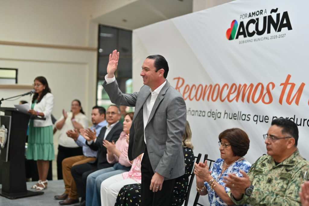 “Un maestro no solo enseña, transforma vidas. Gracias por ser guía, ejemplo y esperanza para miles de niños y jóvenes de Acuña. Su vocación no se mide en años, sino en almas tocadas para siempre”, expresó el presidente municipal en su mensaje.