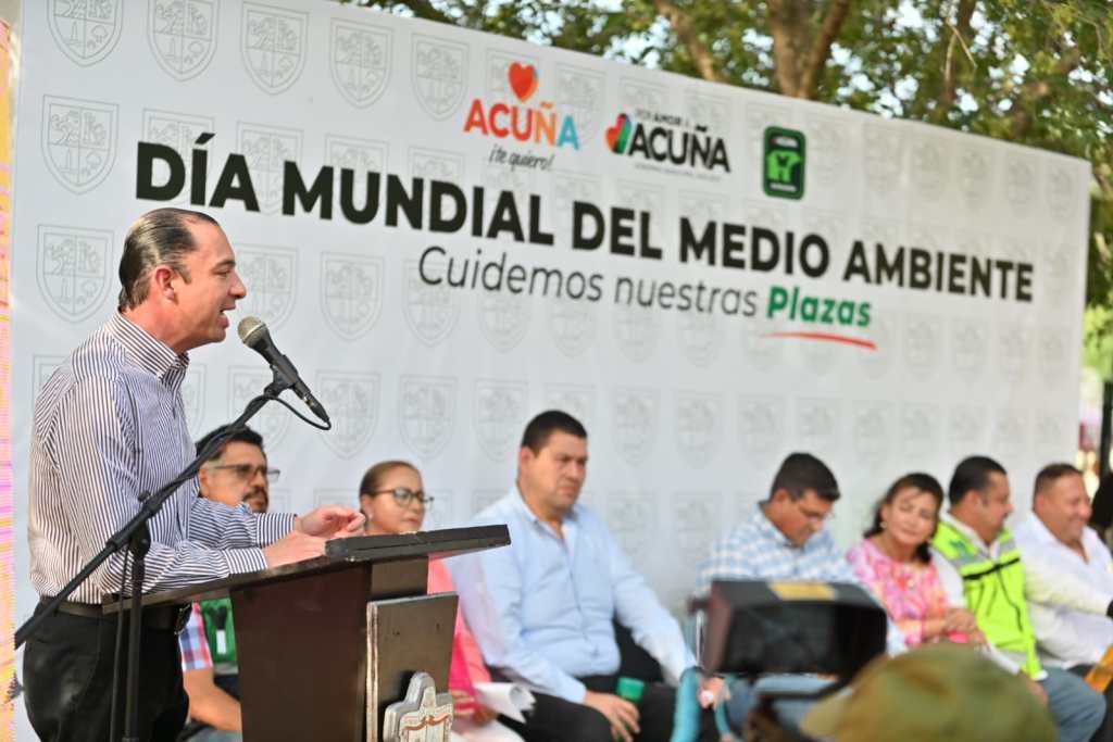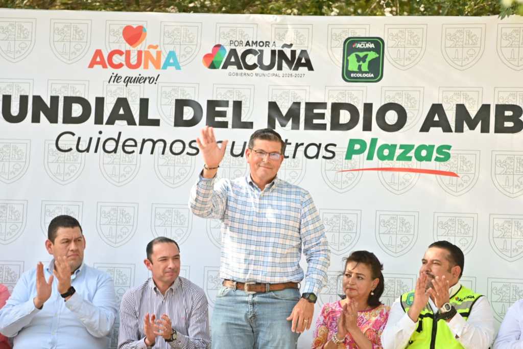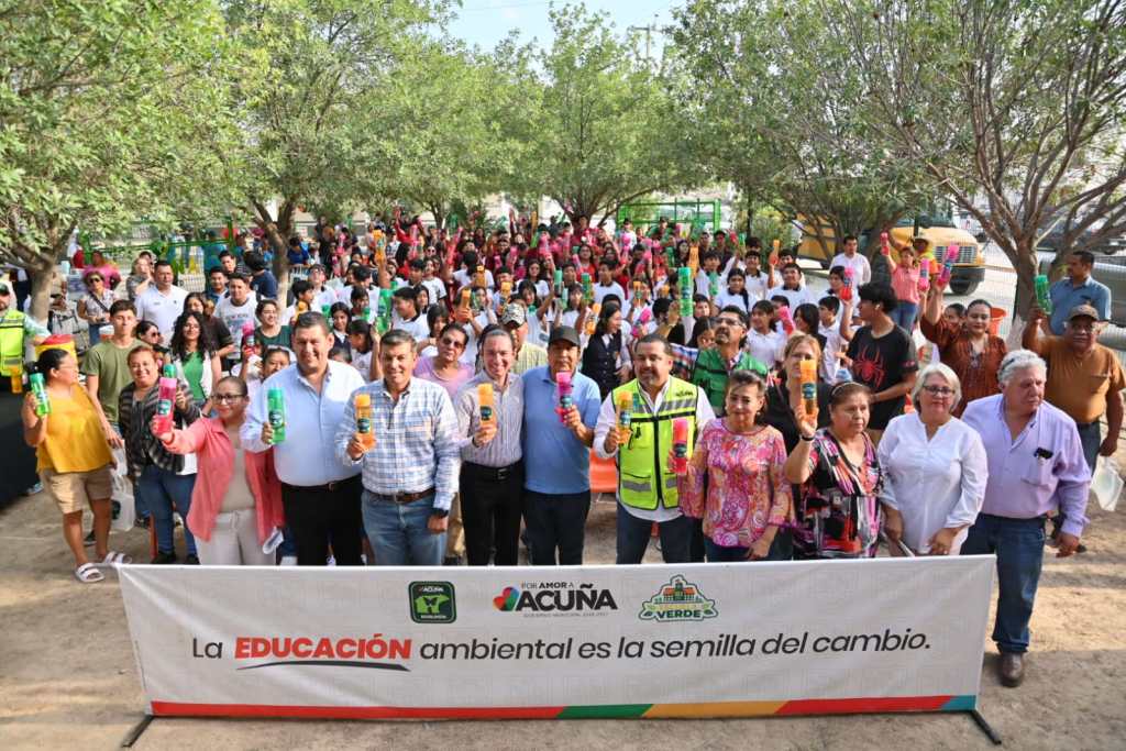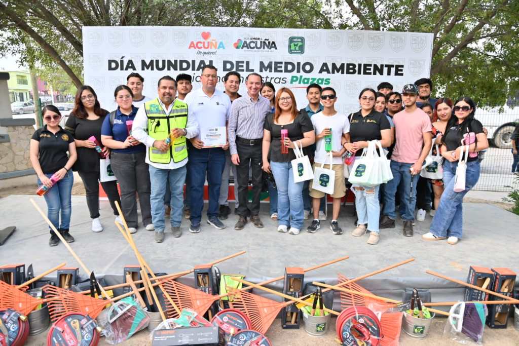 Acuña, Coah. 05 de junio de 2025.- En un ambiente de participación y entusiasmo juvenil, el alcalde Emilio de Hoyos Montemayor encabezó este jueves un evento conmemorativo con motivo del Día Mundial del Medio Ambiente, reiterando el compromiso del Gobierno Municipal con el cuidado del entorno y el futuro del planeta.