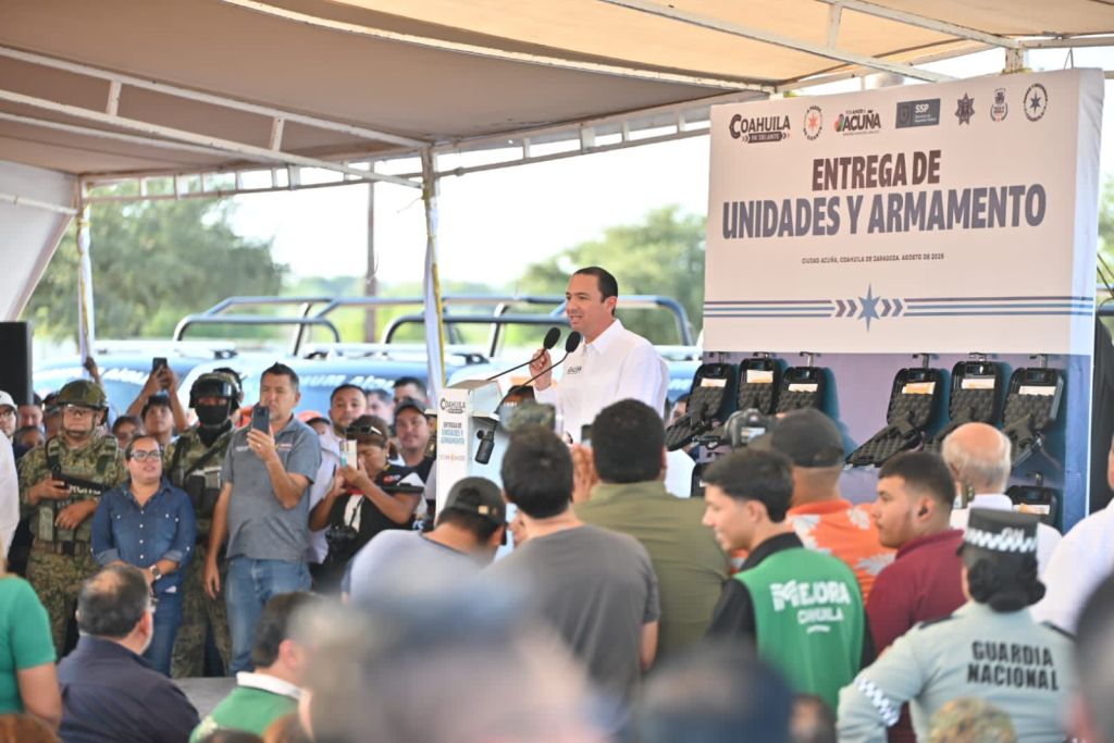 El gobernador Jiménez Salinas reconoció el esfuerzo del Ayuntamiento de Acuña y resaltó la importancia de la coordinación entre los distintos niveles de gobierno para mantener a Coahuila como referente nacional en seguridad: “Cuando se trabaja en equipo se logran grandes cosas. En Acuña se está cumpliendo, y seguiremos respaldando a las familias con más patrullas, equipamiento y tecnología para que este municipio siga siendo la frontera más segura del país”.