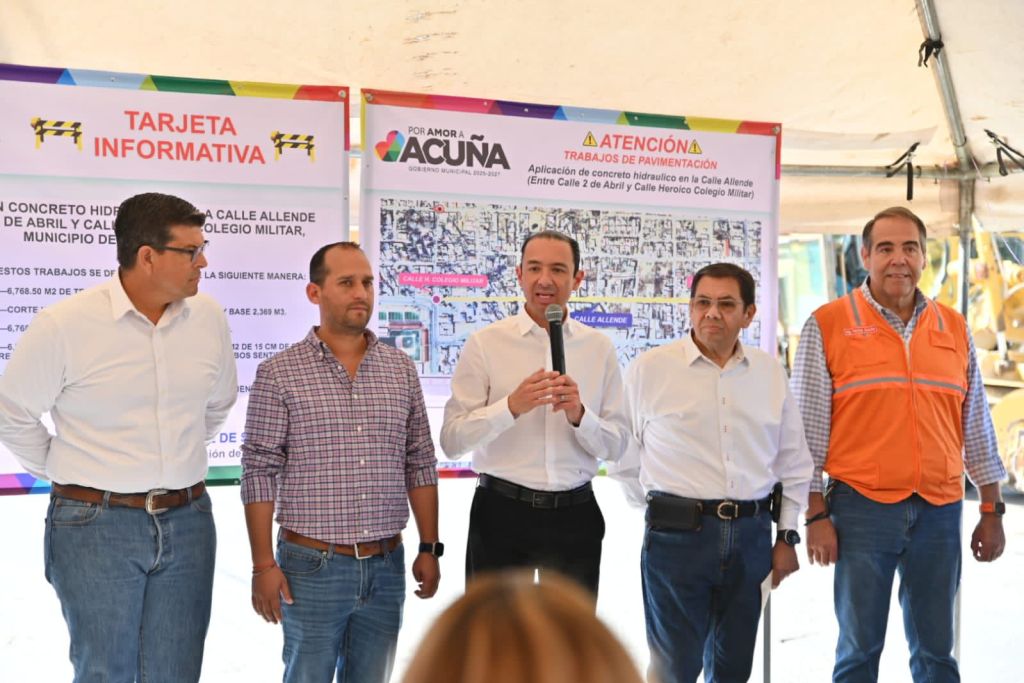 Acuña, Coahuila; 22 de septiembre de 2025.- El alcalde Emilio De Hoyos Montemayor encabezó el arranque de la obra integral de rehabilitación en la calle Allende, entre 2 de Abril y Heroico Colegio Militar, una acción que responde a una de las solicitudes más recientes del sector.